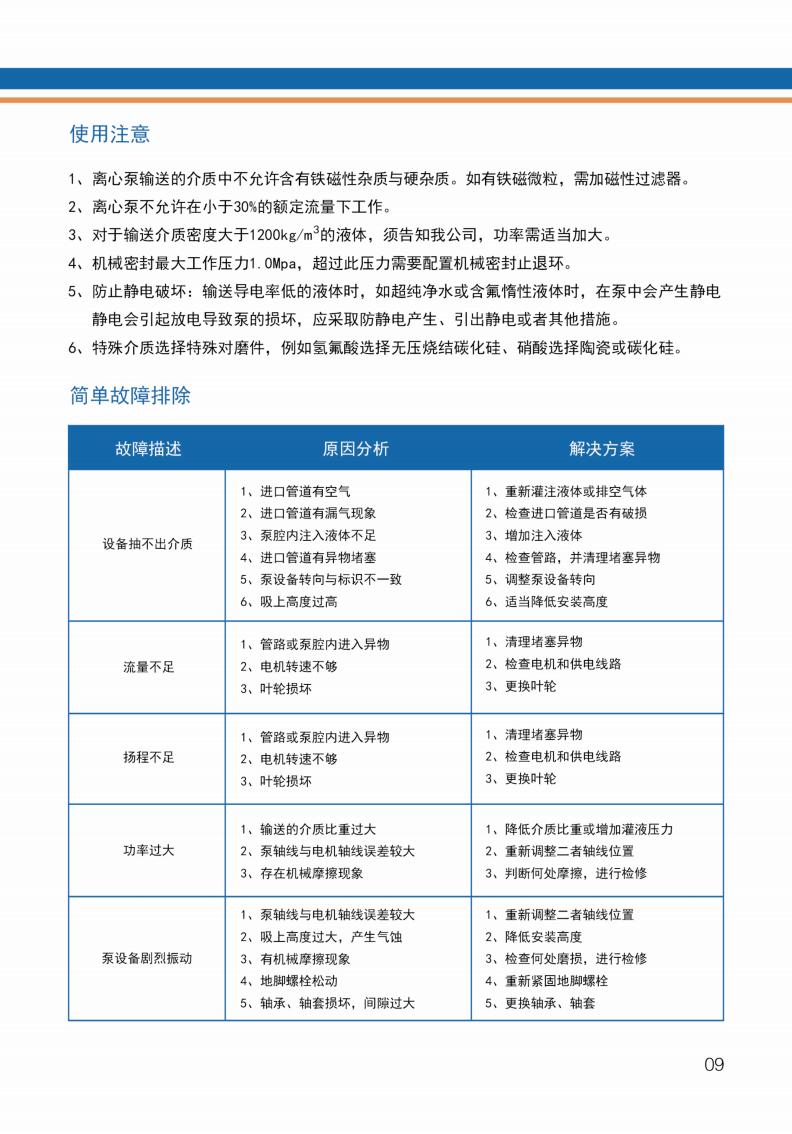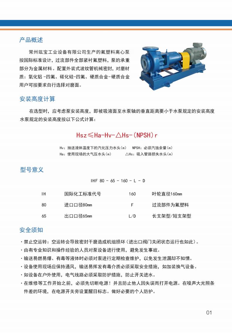 衬氟离心泵选型及使用说明