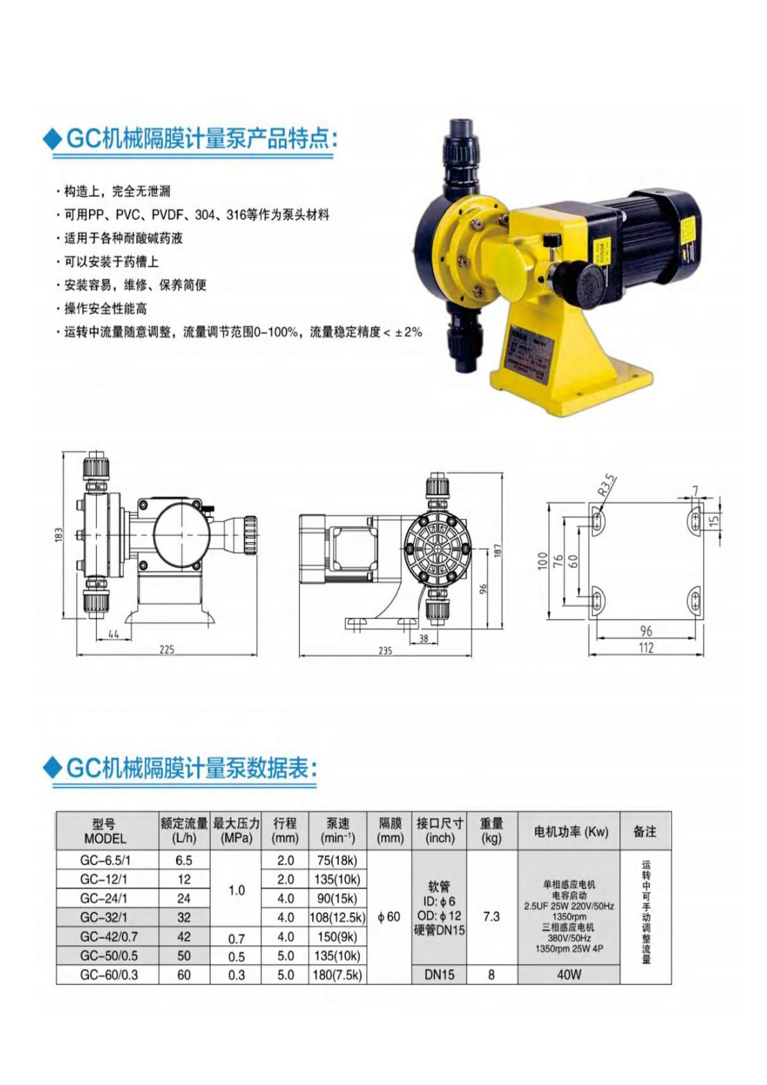 机械隔膜计量泵选型及使用说明